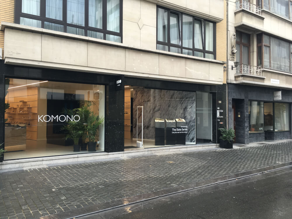 A.P.Cなどが並ぶ通り沿いにKOMONOの世界一号店があります。