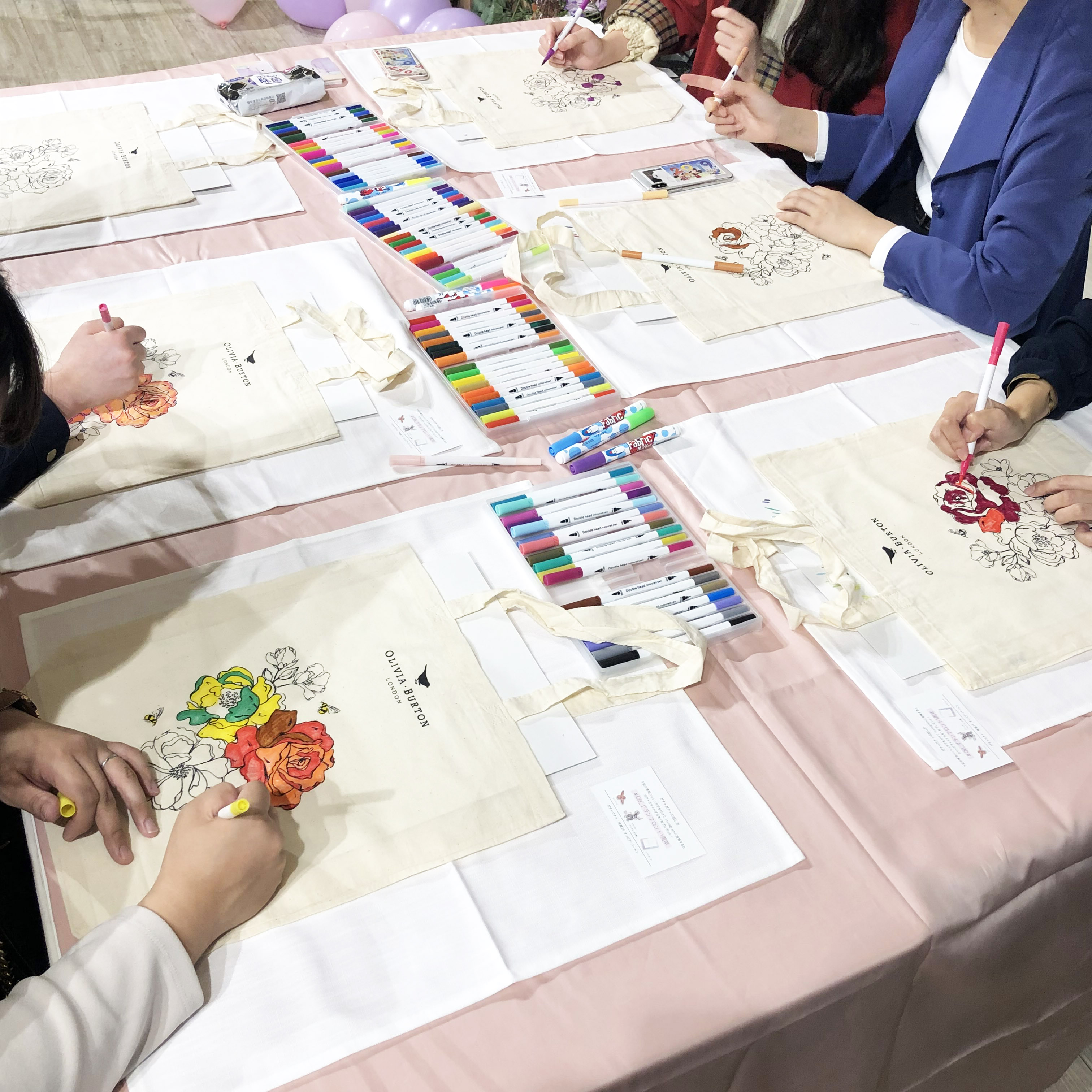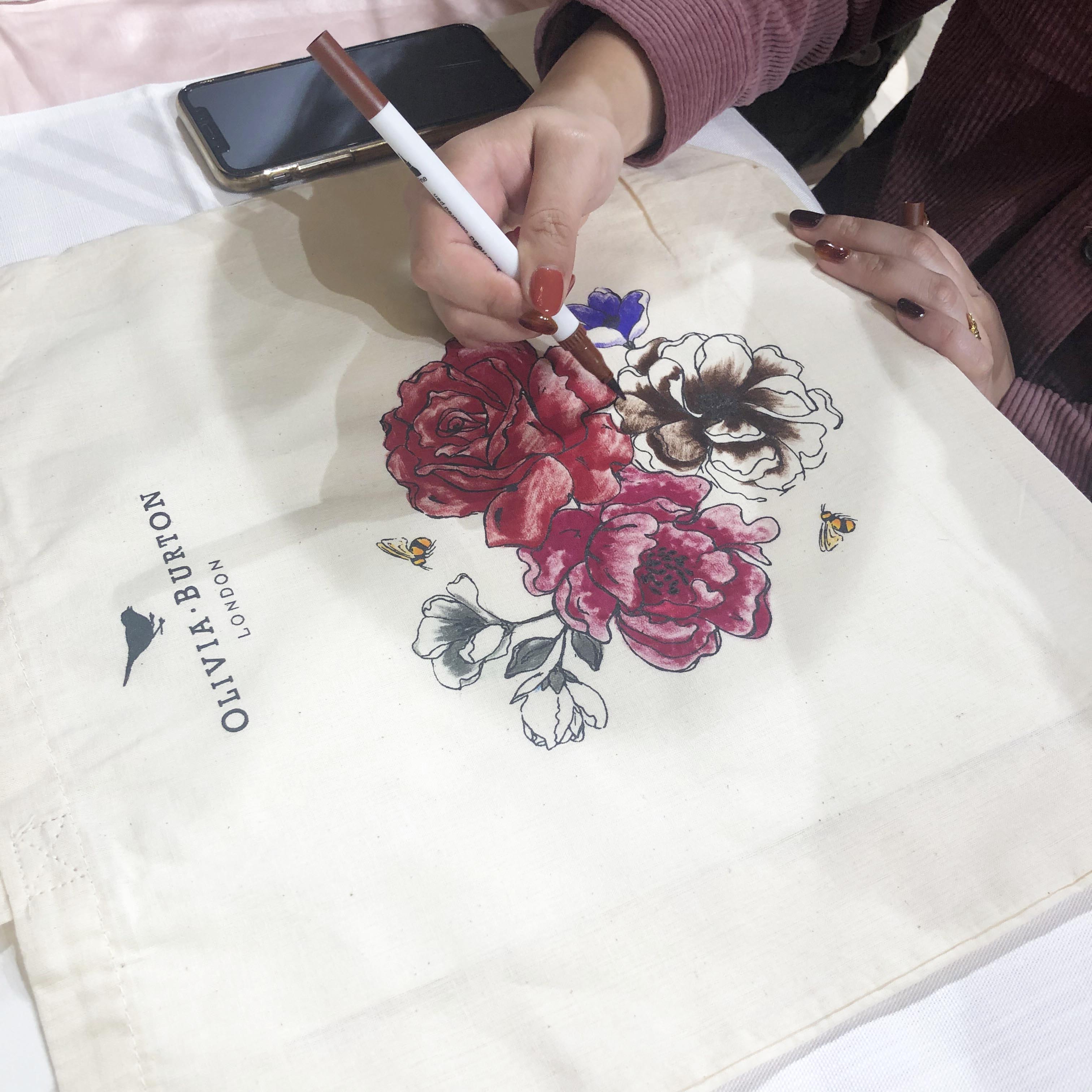 オリビア・バートンの可愛い線画が描かれたトートバッグに、好きな色を塗って自分だけのオリジナルバッグを作ろう企画