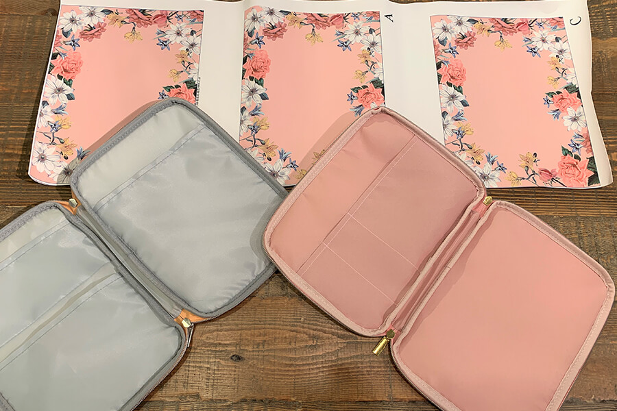 そこから、生地、厚さ、色味、ジップ、箔、エンボス加工、などなど、いろいろなデザイン修正をかさねて・・・・