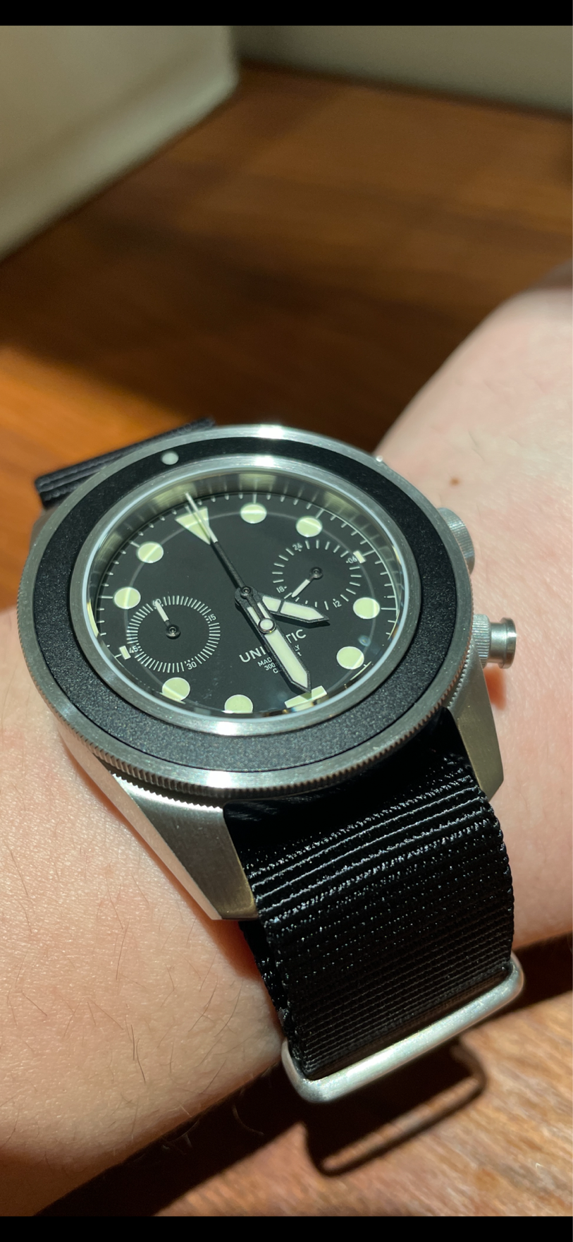 はい!UNIMATIC唯一のクオーツモデルで存在感のあるクロノグラフです。