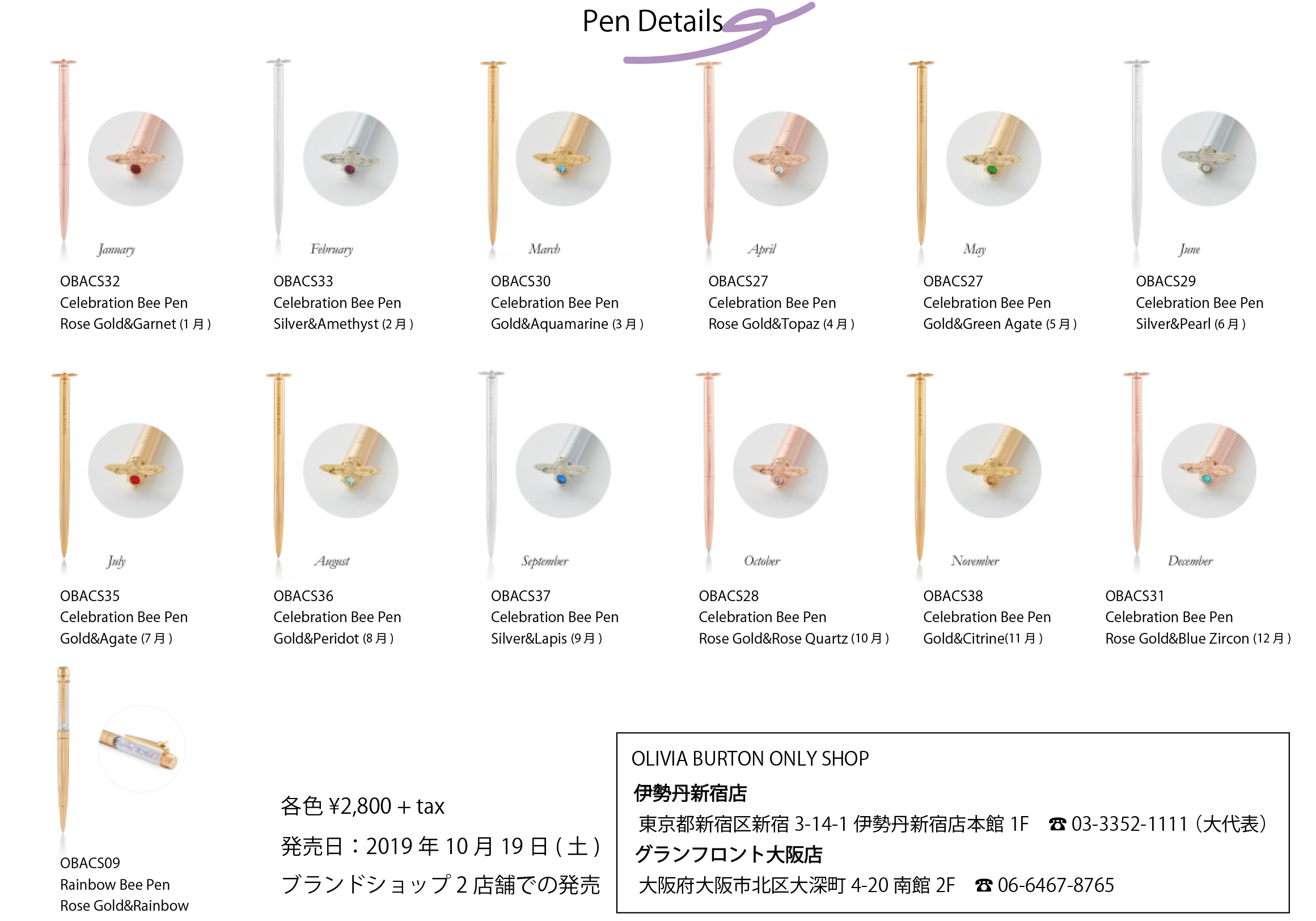 イギリス・ロンドン発のフラワーウォッチブランド「OLIVIA BURTON(オリビア・バートン)」のブランドコンセプトショップ、グランフロント大阪店がオープン1周年を記念して、2019年10月19日(土)に、オリジナルボールペンを発売します。