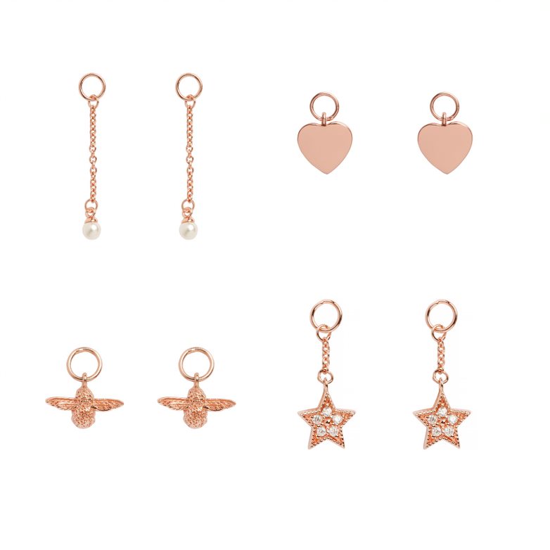 全国80点限定のジュエリーボックスが登場します。ローズゴールドのシンプルなフープピアスと、ストーンが付いた可愛いフープピアスに気分で付け替えの出来るチャームが4種類セットになった豪華なセットは、ボックス自体がクローゼットをイメージして作られているため、そのままジュエリーボックスとしても使える優れもの。ON/OFFで付け替えができ、コンパクトなボックスは女の子のバッグにもスポッと入るので、お仕事にお出かけに持ち歩くのにも最適です。