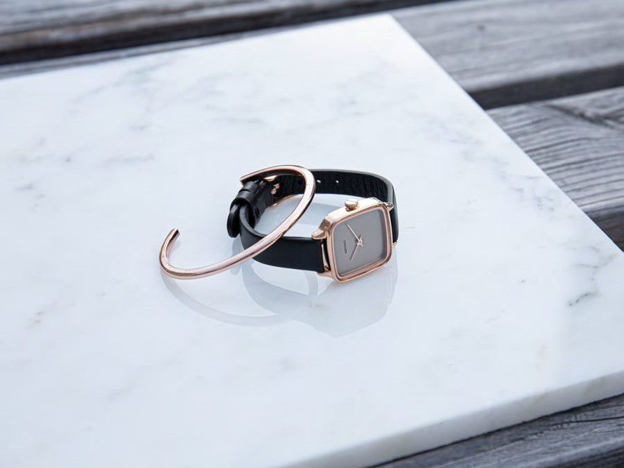 2019年秋冬コレクションで新たに登場した腕時計≪KATE(ケイト)≫と日本限定のバングルのセット。ケイトは直線的でメンズライクなスクエア型ケースを採用。また、12mmのブラックレザーベルトで手元をすっきりとスマートに見せてくれます。一方で、ケースの四つ角には丸みを帯びた曲線美を、ケースには肌馴染みの良いローズゴールドのカラーをチョイス。絶妙なバランスで女性らしさを引き立てるスクエアウォッチに、同色のローズゴールドのバングルを合わせれば、腕元をより一層エレガントな印象に。