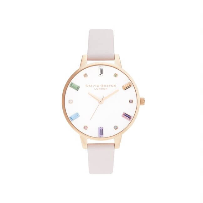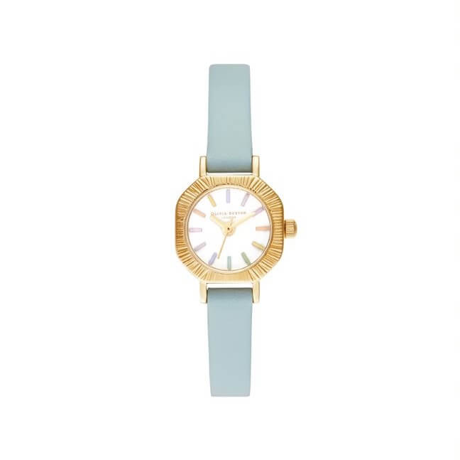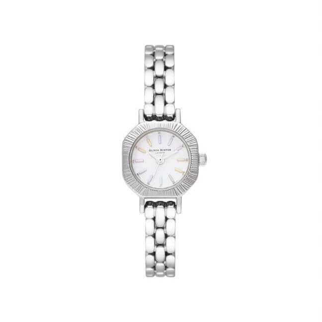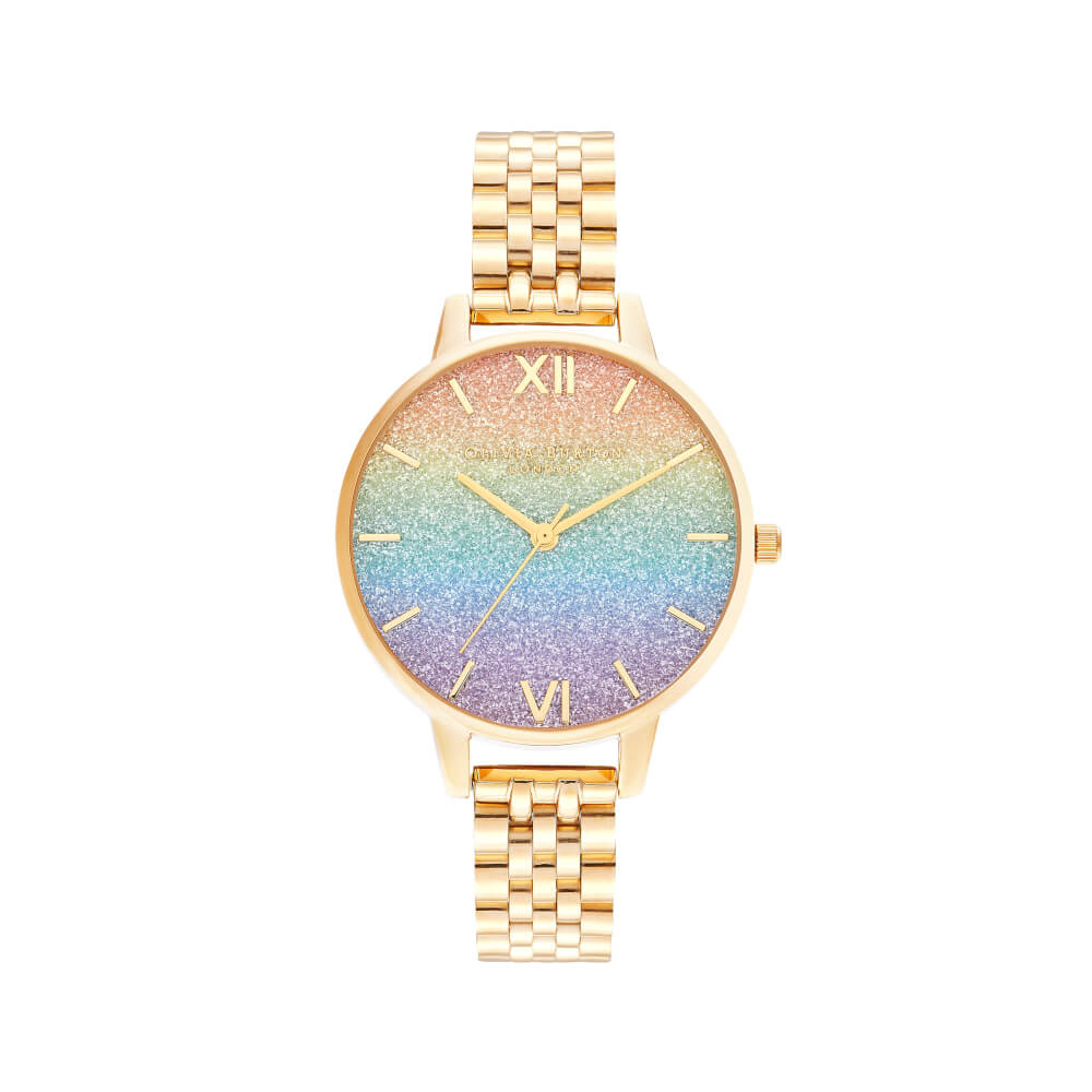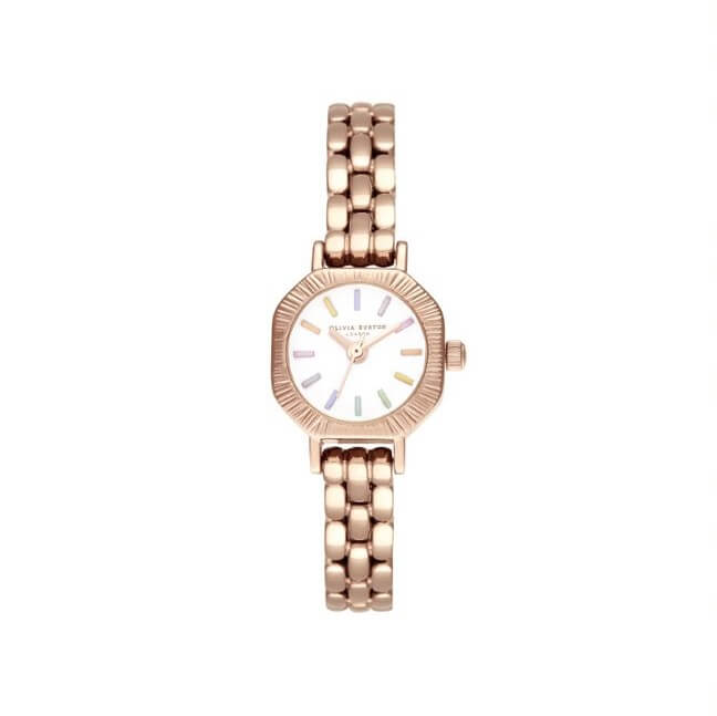 60年代初期に一大ブームを巻き起こしたバービー人形スタイルや、当時の女性を虜にしたマルチカラーのスカーフ、レインボーカラーのセーターからインスパイアされた明るく、はっきりとした楽しいカラーが特徴的なシリーズ。8角形のクッション型のケースを採用した23mmのミニダイアルは可愛らしいパステルレインボーのインデックスを採用。サスティナブルなクリスタルである、スワロフスキーを使用したレインボーベゼルは上品なラグジュアリーデザインに仕上がり、目を惹くレインボーグリッターダイアルはコーディネートのアクセントに◎