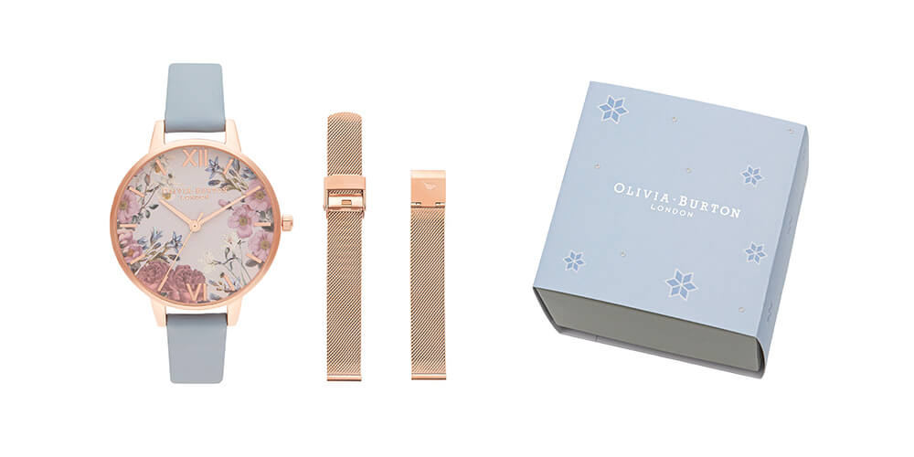 そして、ブランドでダントツの人気を誇る、イギリスの伝統的なブリティッシュガーデンをイメージしてデザインされた「BRITISH BLOOMS(ブリティッシュ ブルームズ)」シリーズより、替えベルトがセットになったスペシャルなクリスマスボックスが数量限定で登場。日々を頑張る自分へのご褒美として、大切な人への贈り物として、思い出に残る1本を選んでほしい。