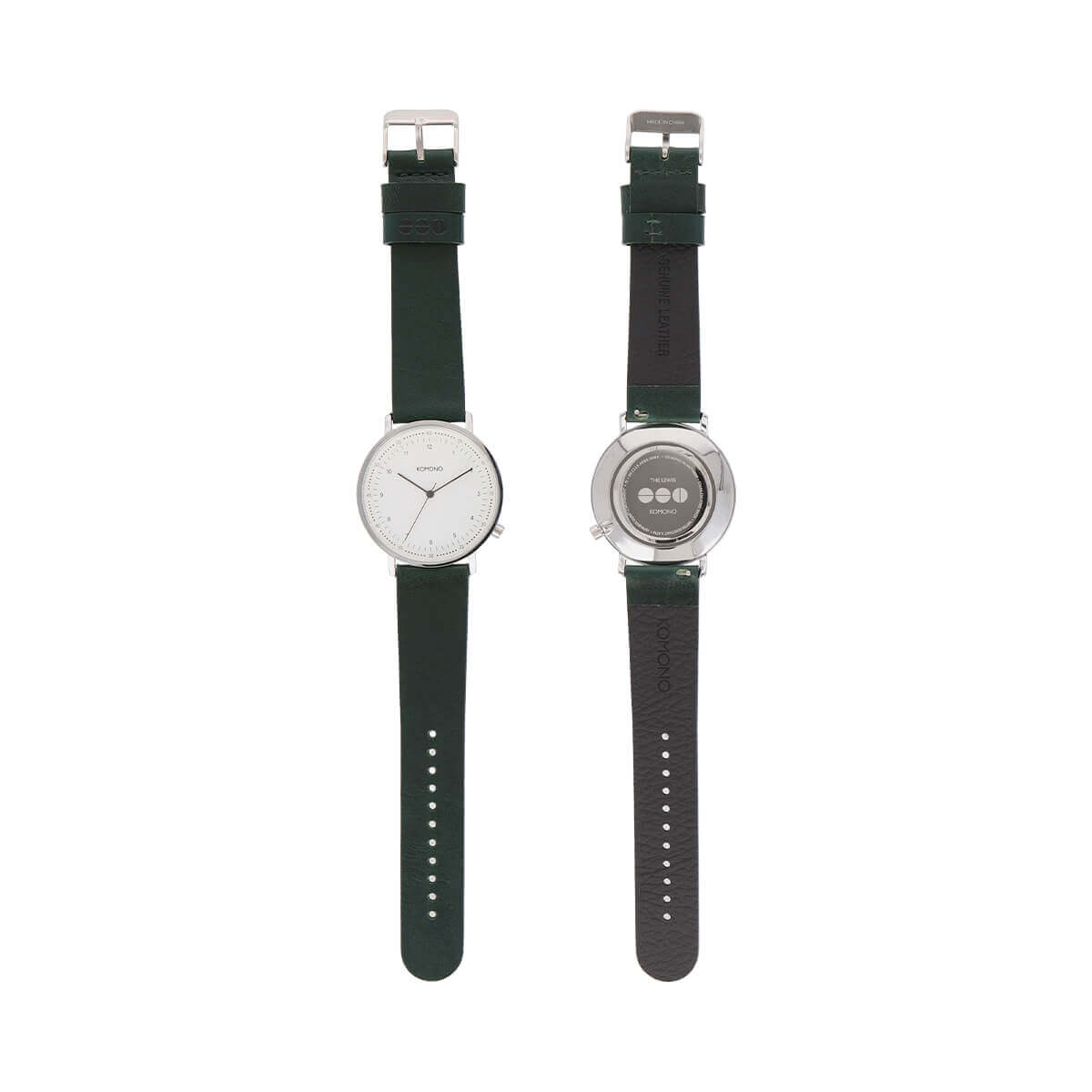 「FOR HIM」には、40mmのホワイト文字盤×シルバーケースのLEWIS(ルイス)をセット。付属するレザーベルトは、冠婚葬祭やビジネスシーンでも着用しやすいブラックと、大人の男の深みや余裕を演出してくれるハンター(ダークグリーン)の2カラーを用意。まさに2度おいしい男前ウォッチだ。