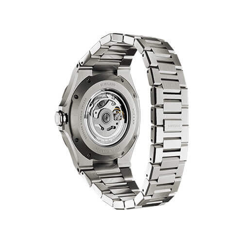 ミラノ路面電車の表現は、線路をイメージしてメインダイアルに施されたデボス加工、そしてルート番号インジケーターに合わせた「0/12」を刻むインデックス、赤いスピードメータースタイルの秒針を添えて完成された。そしてさらに多機能自動巻き時計として、SEIKO NH39を採用したムーブメント、特別なツインダイアルの設置、更には男心を擽る9時位置のオープンハートで時計の心臓部を表から覗く事が出来る。